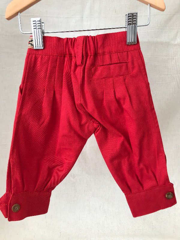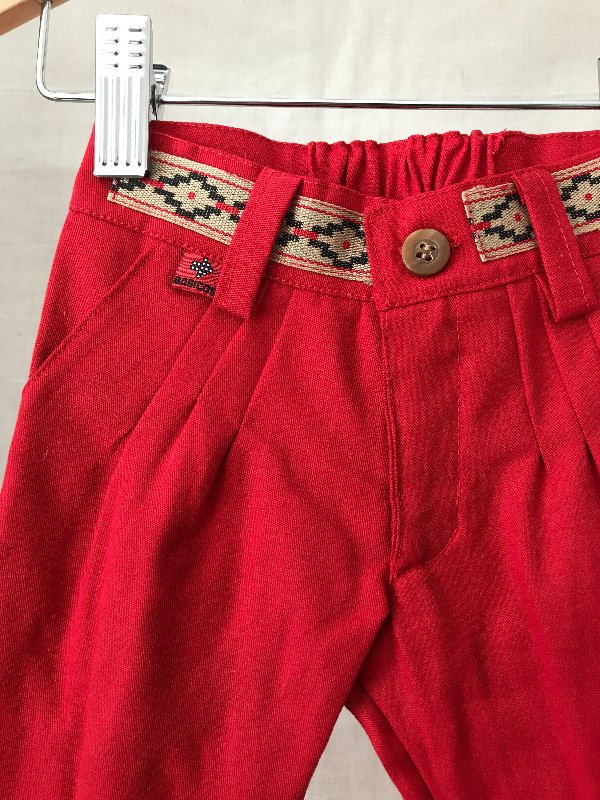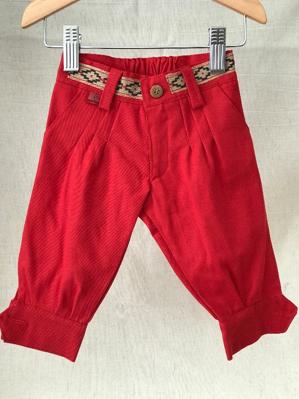 Bombacha de campo con guarda pampa en cintura, bolsillos laterales y bolsillo ojal trasero, cremallera con cierre, elástico en cintura media para mayor comodidad del bebé. Motivo de guarda pampa puede llegar a variar sutilmente según disponibilidad. Tela: Gabardina 100% algodón.