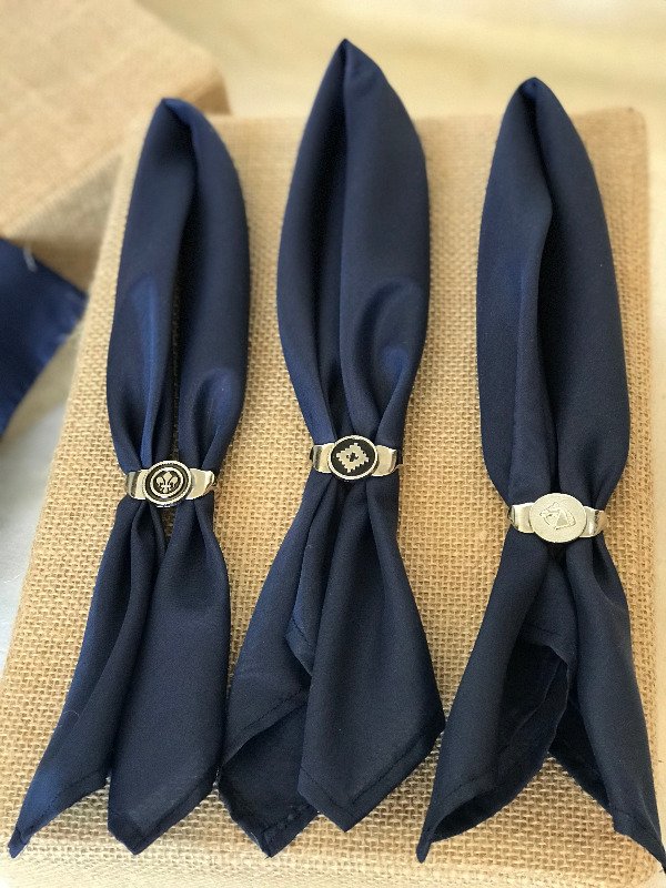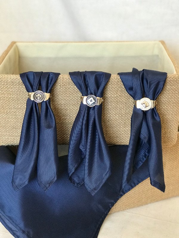Incluye pasapañuelo doble anillo varios modelos que se enviá de manera aleatoria entre flor de liz, caballo, flor, etc.