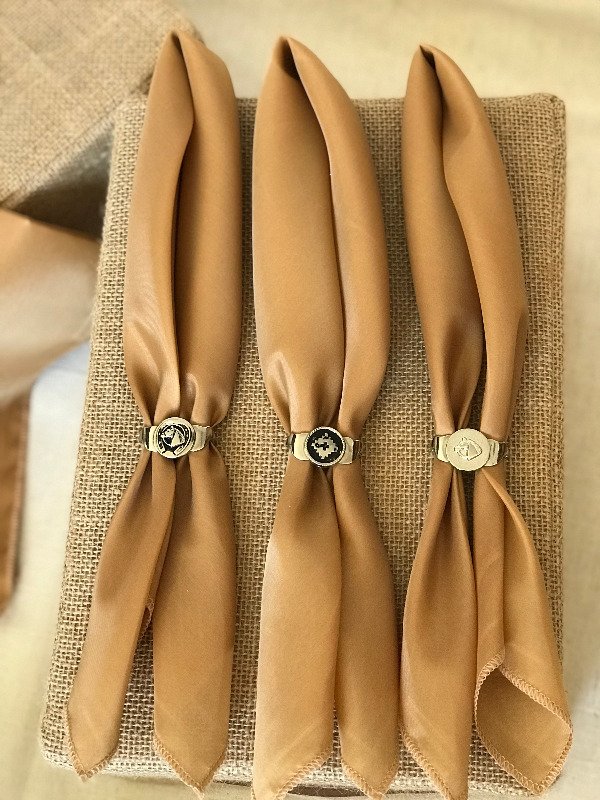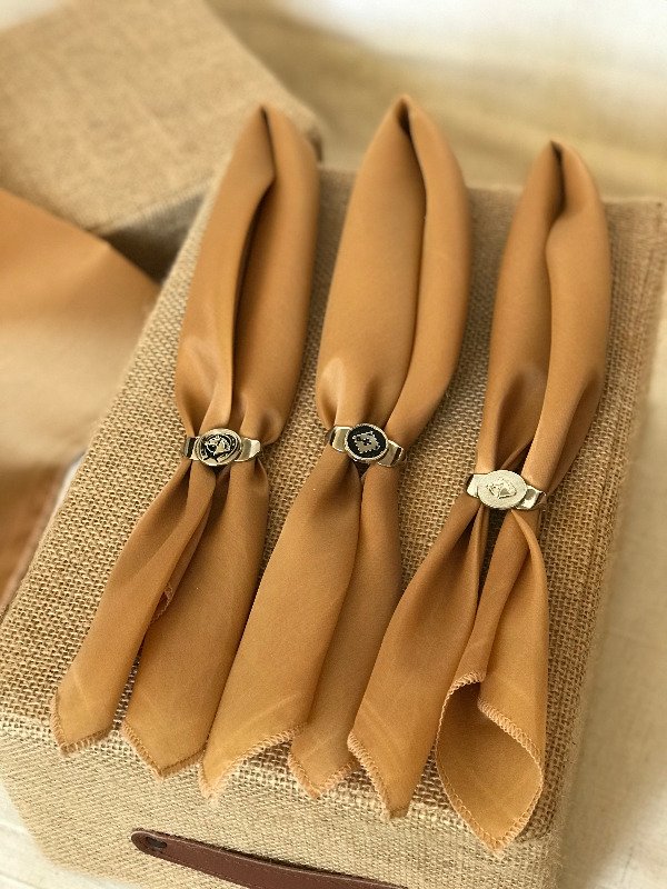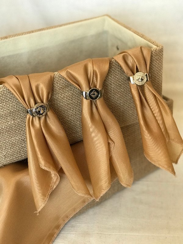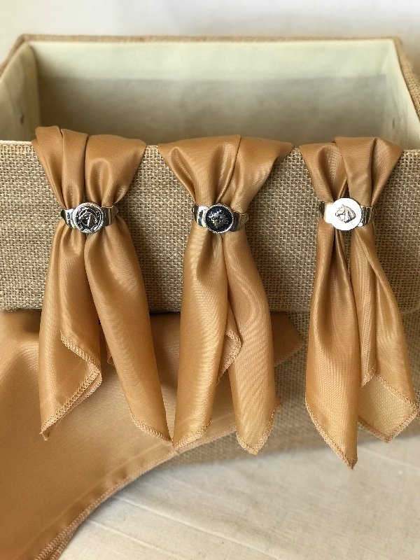 Incluye pasapañuelo doble anillo varios modelos que se enviá de manera aleatoria entre flor de liz, caballo, flor, etc.