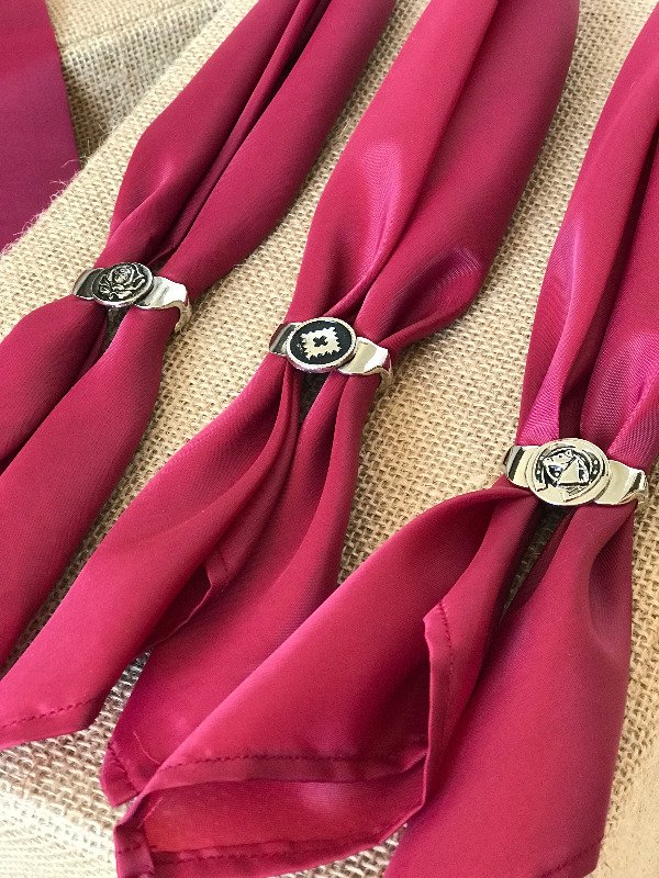 Incluye pasapañuelo doble anillo varios modelos que se enviá de manera aleatoria entre flor de liz, caballo, flor, etc.