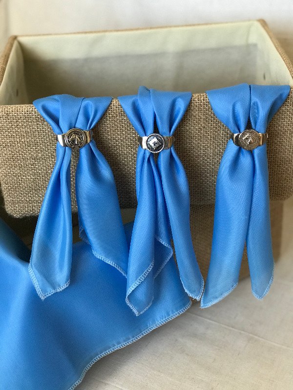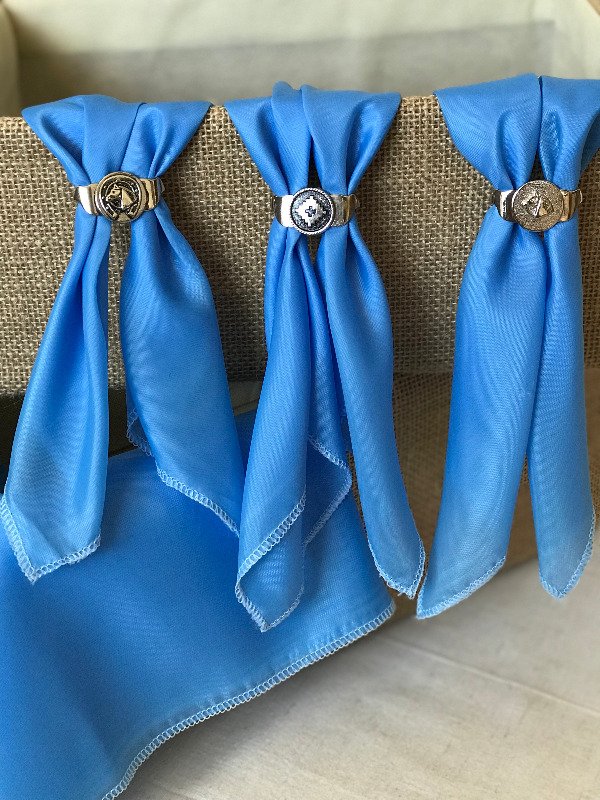 Hechos con suave tela liviana y terminaciones delicadas, estos pañuelos gauchos son el toque perfecto para completar el look campero de los más chiquitos. Acompañados por pasapañuelos con diseños criollos, combinan tradición y ternura en una misma prenda.