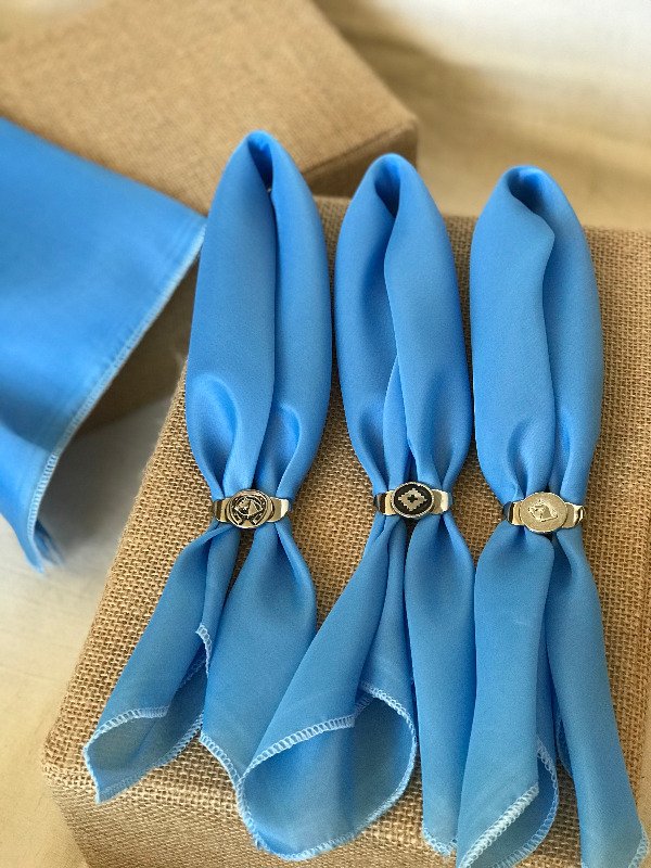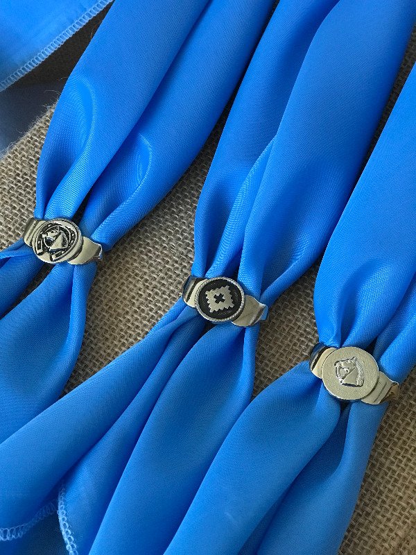 Incluye pasapañuelo doble anillo varios modelos que se enviá de manera aleatoria entre flor de liz, caballo, flor, etc.