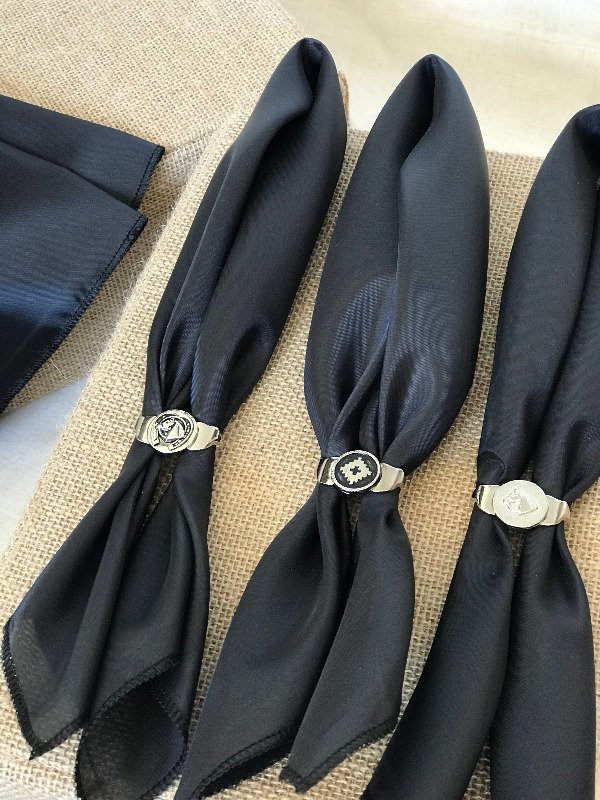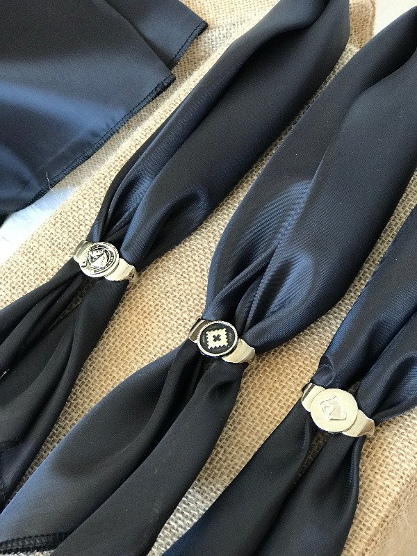 Incluye pasapañuelo doble anillo varios modelos que se enviá de manera aleatoria entre flor de liz, caballo, flor, etc.