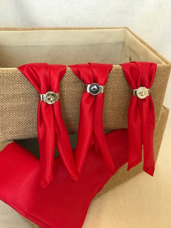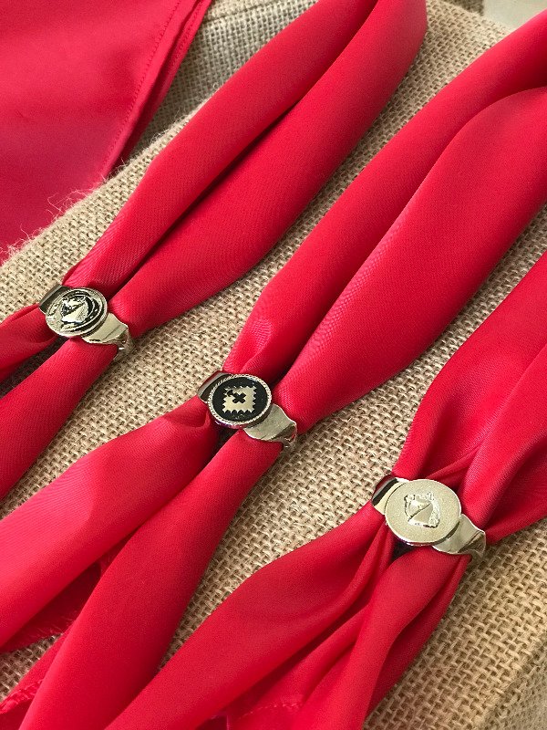 Incluye pasapañuelo doble anillo varios modelos que se enviá de manera aleatoria entre flor de liz, caballo, flor, etc.