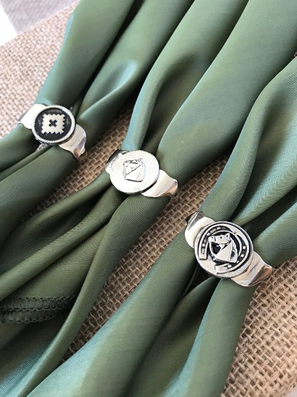 Incluye pasapañuelo doble anillo varios modelos que se enviá de manera aleatoria entre flor de liz, caballo, flor, etc.