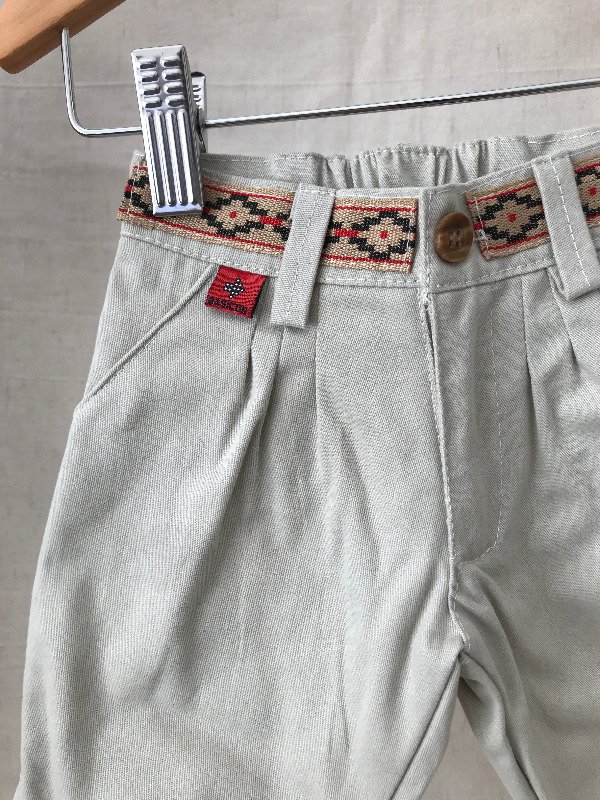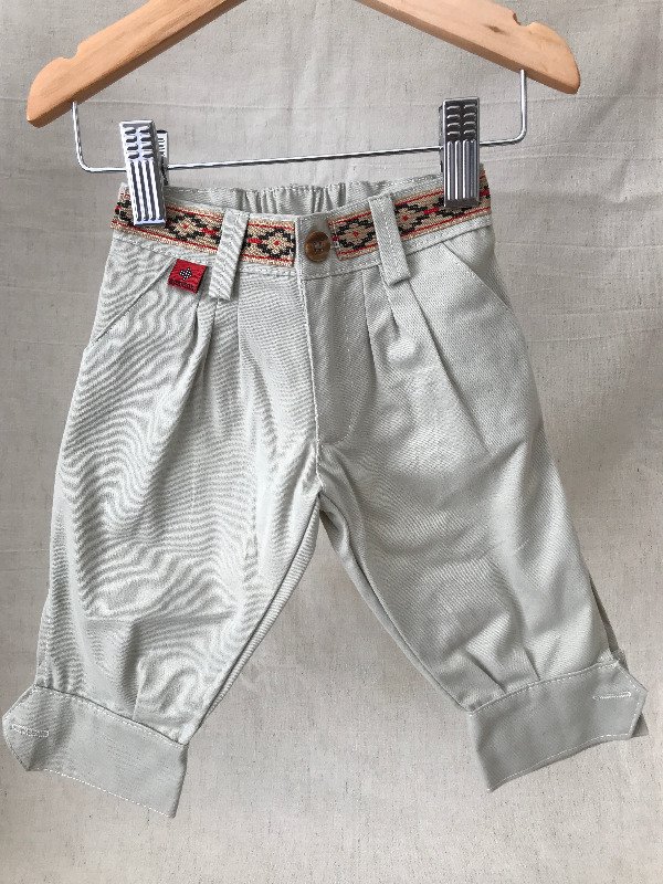 Bombacha de campo con guarda pampa en cintura, bolsillos laterales y bolsillo ojal trasero, cremallera con cierre, elástico en cintura media para mayor comodidad del bebé. Motivo de guarda pampa puede llegar a variar sutilmente según disponibilidad. Tela: Gabardina 100% algodón.